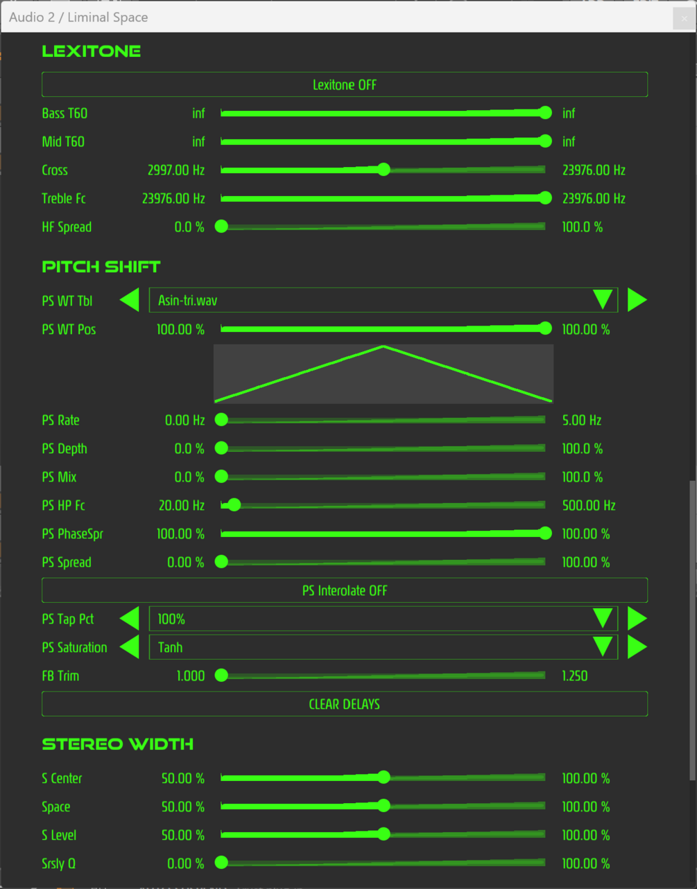 - Integrated Stereo Widener: Srsly3-style mid/side widening (or focusing!) for the wet signal.
